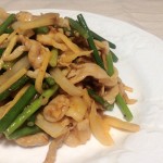 にんにくの芽を使った炒め物の紹介です。 にんにくの芽のパンチのある香りと歯ごたえが豚こま肉とマッチして、食欲増進間違いなし!!
