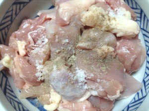鶏肉に塩・こしょうをまぶし、よく馴染ませる。