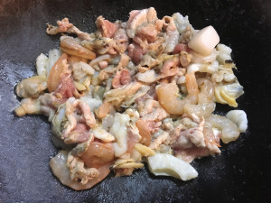 合わせ調味料を入れ、ひと煮立ちさせたら水で溶いた片栗粉を入れとろみをつける。