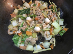 ねぎ・にんじん・白菜・たけのこを入れ炒める。