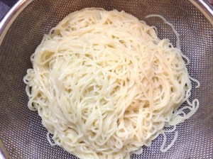 麺が茹であがったらざるに上げ、冷水でしっかり締めてよく水気を切る。