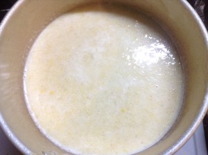 最後に牛乳を入れ温めるときは、底が焦げ付かないように注意してください。
