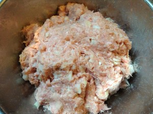 粘りが出るまで練ることにより、肉汁が閉じ込められやすくなり、また肉が結着しやすくなります。