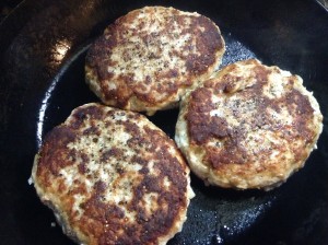 フライパンにオリーブオイルを敷き、タネを入れて強火~中火で焼く。