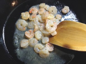 炒める時は、エビの表面の色が変わりかけたくらいで上げてください。