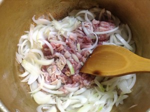 鍋に油を敷き、玉ねぎを入れ炒める。