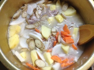 ★の調味料を入れ、大根・にんじん・ごぼうも入れる。