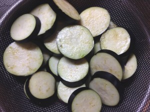 なすは食べやすい大きさに切り、5分ほど水に浸してアクを抜く。