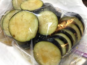 再度なすの水気を切り、保存バッグに合わせた調味料と一緒に入れ、よく揉み込む。