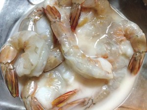 エビは、最初に塩・片栗粉・水を揉み込むことにより、汚れや臭みが取れます。