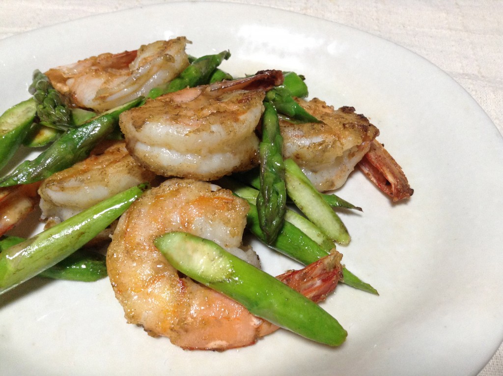 揚げ焼きでお手軽に☆アスパラとえびの塩レモン炒め