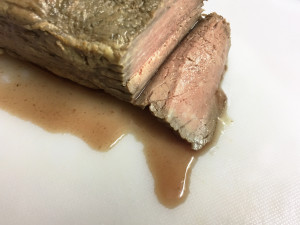 低温調理が終わり冷蔵保存していたローストビーフから、必ずといっていいほど赤い液体が出ます。