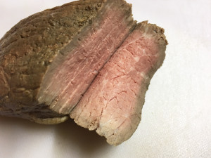 ですが、今回のように低温調理した肉は、変色が殆ど起きないため赤いままなのです。