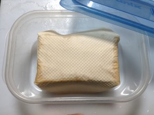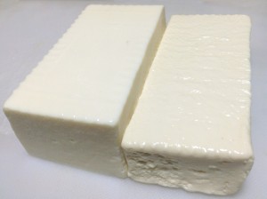ちなみに写真は、左は普通の豆腐、右が3日間寝かせたもの。