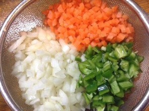 玉ねぎ・にんじん・ピーマンをみじん切りにする。