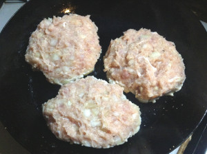 フライパンにオリーブオイルを敷き、タネを入れて強火~中火で焼く。