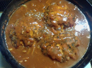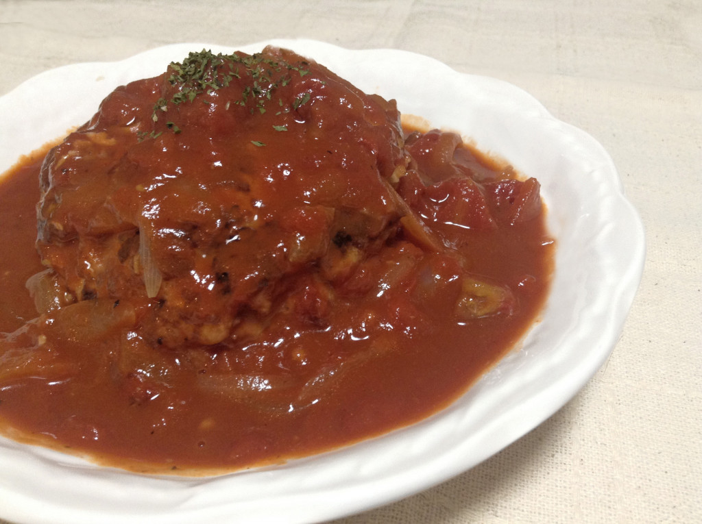 本日は、トマト煮込みハンバーグのレシピ紹介です。
