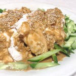 鶏肉の皮を取り、食べやすい大きさに切る。