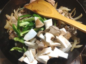 豚肉→エリンギ・ピーマンの順に入れ、炒める。