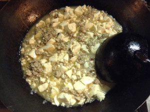 水と豆腐を入れ、軽く煮立たせる。