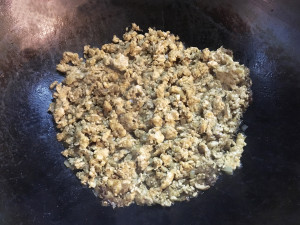 続いて挽肉を入れ、炒める。