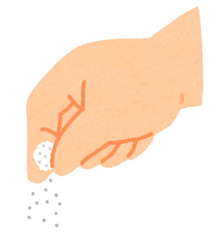 「少々」は、親指・人差し指の2本の指先で、軽くつまんだ分量です。