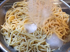 茹でた後冷水にさらすことで、麺が引き締まり程よい硬さになります。