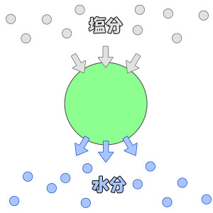 水分が塩分濃度が薄い方から濃い方へ移動する力を「浸透圧」と言います。